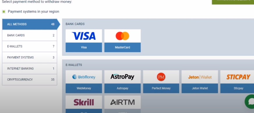 The list of withdrawal options is tailored to your region and the deposit methods you have used. If a method isn't showing, it may be temporarily unavailable or you haven't used it for a deposit yet.