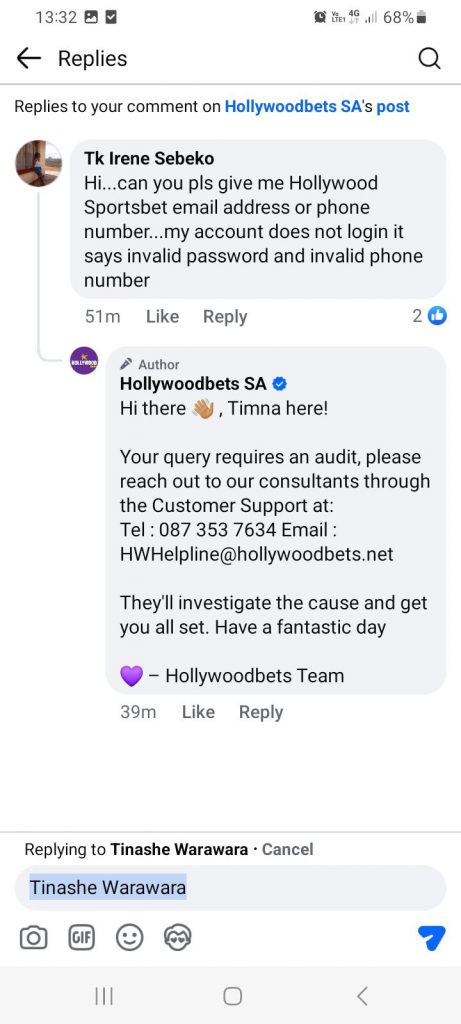 - Email: withdrawals@hollywoodbets.net (48-hour response)